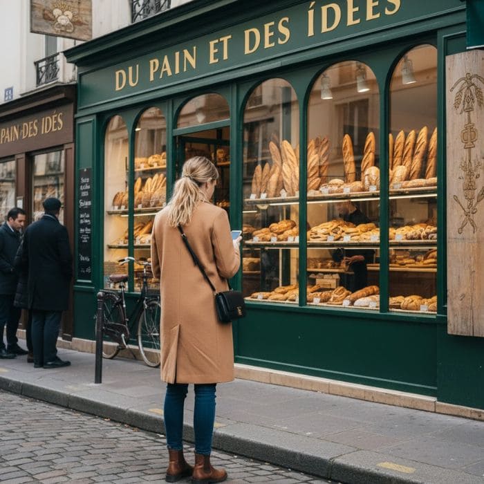 I ordered a pistachio escargot and a classic pain des amis, both still warm, and stood near the window eating slowly while watching locals come and go.