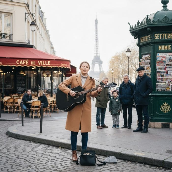 The next day, while sitting near Montmartre, I watched street performers gather small crowds with guitars, violins, and quiet confidence.